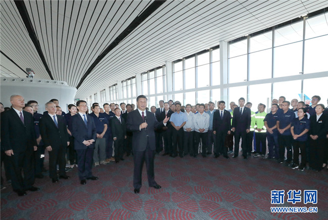 習(xí)近平強(qiáng)調(diào),大興國際機(jī)場能夠在不到5年的時(shí)間里就完成預(yù)定的建設(shè)任務(wù),順利投入運(yùn)營,充分展現(xiàn)了中國工程建筑的雄厚實(shí)力,充分體現(xiàn)了中國精神和中國力量,充分體現(xiàn)了中國共產(chǎn)黨領(lǐng)導(dǎo)和我國社會(huì)主義制度能夠集中力量辦大事的政治優(yōu)勢。新中國70年何等輝煌!中國共產(chǎn)黨領(lǐng)導(dǎo)中國人民實(shí)現(xiàn)了一個(gè)又一個(gè)“不可能”,創(chuàng)造了一個(gè)又一個(gè)難以置信的奇跡。奇跡是干出來的,社會(huì)主義是干出來的。中國共產(chǎn)黨和中國人民有雄心、有自信繼續(xù)奮斗,朝著實(shí)現(xiàn)“兩個(gè)一百年”奮斗目標(biāo)、實(shí)現(xiàn)中華民族偉大復(fù)興的中國夢奮勇前進(jìn)。實(shí)踐充分證明,中國人民一定能,中國一定行。