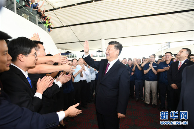 投運(yùn)儀式結(jié)束后,習(xí)近平來到機(jī)場國際出發(fā)大廳,看望參與機(jī)場建設(shè)和運(yùn)營的工作人員代表。習(xí)近平同大家一一握手,代表黨中央向大家并向所有參與機(jī)場規(guī)劃、建設(shè)、運(yùn)營的同志們表示熱烈的祝賀和節(jié)日的問候。習(xí)近平指出,大興國際機(jī)場建設(shè)標(biāo)準(zhǔn)高、建設(shè)工期緊、施工難度大,全體建設(shè)者辛勤勞動(dòng)、共同努力,高質(zhì)量地完成了任務(wù),把大興國際機(jī)場打造成為精品工程、樣板工程、平安工程、廉潔工程,向黨和人民交上了一份令人滿意的答卷!