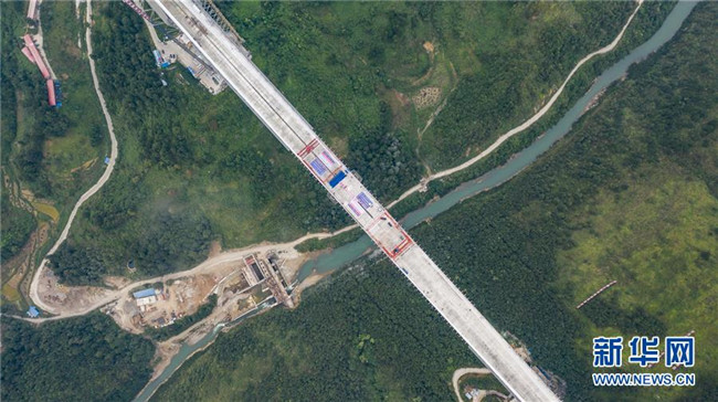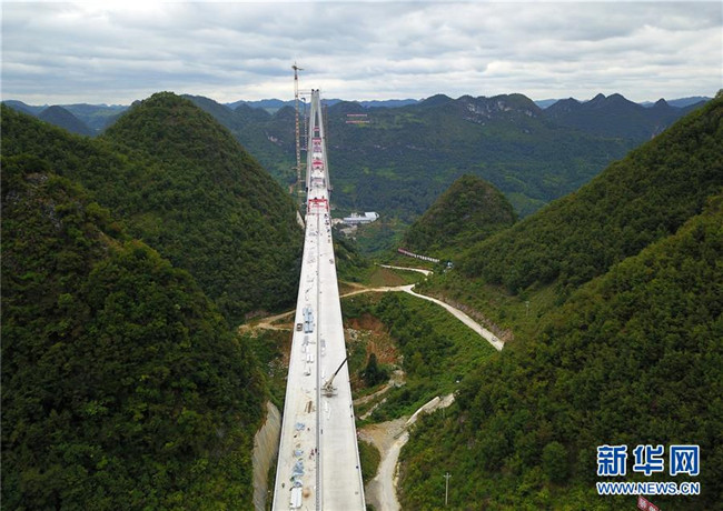 這是正在澆筑最后一方混凝土的平塘特大橋(9月26日無(wú)人機(jī)拍攝)。新華社記者陶亮攝
