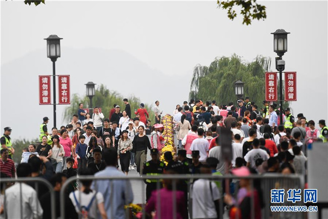 10月7日,杭州西湖風景區(qū)的斷橋上游人絡繹不絕。經(jīng)文化和旅游部綜合測算,2019年國慶七天全國共接待國內(nèi)游客7.82億人次,同比增長7.81%;實現(xiàn)國內(nèi)旅游收入6497.1億元,同比增長8.47%。新華社記者 黃宗治 攝