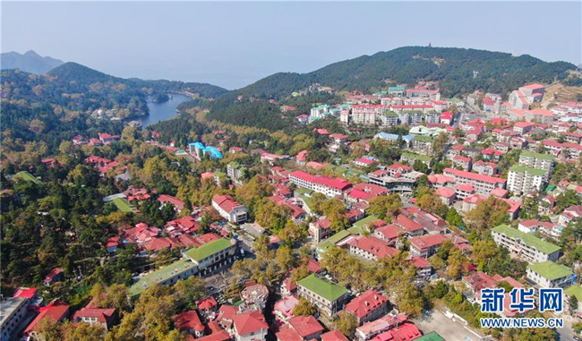 這是10月10日在廬山風(fēng)景區(qū)內(nèi)拍攝的牯嶺鎮(zhèn)(無人機(jī)拍攝)。新華社記者 胡晨歡 攝