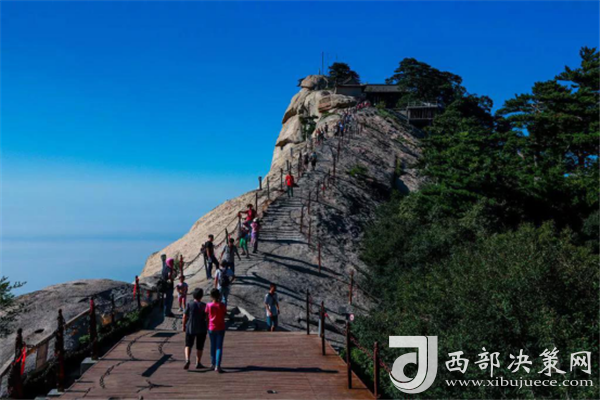 華山是我國(guó)著名的五岳之一,不但是五岳最險(xiǎn),還是五岳最高的山。其雄偉奇險(xiǎn),山勢(shì)峻峭,東、南、西三峰拔地而起,如刀一次削就,壁立千仞,群峰挺秀,以險(xiǎn)峻稱雄于世,自古以來(lái)就有“華山天下險(xiǎn)”“奇險(xiǎn)天下第一山”的說(shuō)法。由于華山太險(xiǎn),魏晉南北朝時(shí),還沒(méi)有通向華山頂峰的道路。直到唐朝,隨著道教興盛,道徒開始居山建觀,逐漸在北坡沿溪谷而上開鑿了一條險(xiǎn)道,形成了“自古華山一條路”。