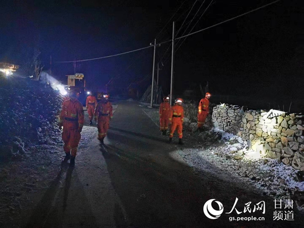 甘肅省森林消防總隊(duì)先遣分隊(duì)已到達(dá)震中并展開勘察、救援。(甘肅省森林消防總隊(duì)供圖)