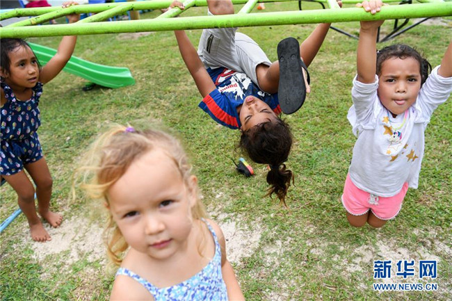 10月26日,在庫(kù)克群島首都阿瓦魯阿的阿皮尼考學(xué)校,幼兒園的孩子在操場(chǎng)上玩耍。