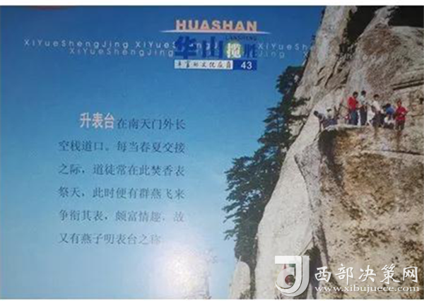 仰天池、洞里甕、全真崖、升表臺(tái),以上就是華山四大謎,帶大家游覽了一番,您覺(jué)得有更好的解釋嗎?如果有可以給我們留言,讓我們大家共同探索華山的未解之謎,用彩筆為華山之謎畫下最美的謎底吧?。ü└澹喝A旅集團(tuán)營(yíng)銷中心)