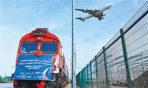 10月25日,中歐班列(義烏—列日)“世界電子貿(mào)易平臺(tái)(eWTP)菜鳥(niǎo)號(hào)”首趟列車(chē)抵達(dá)比利時(shí)列日物流多式聯(lián)運(yùn)貨運(yùn)場(chǎng)站。這是首個(gè)貫通中國(guó)長(zhǎng)三角區(qū)域、中亞和歐洲并服務(wù)于跨境電子商務(wù)的專列。 新華社記者 潘革平攝