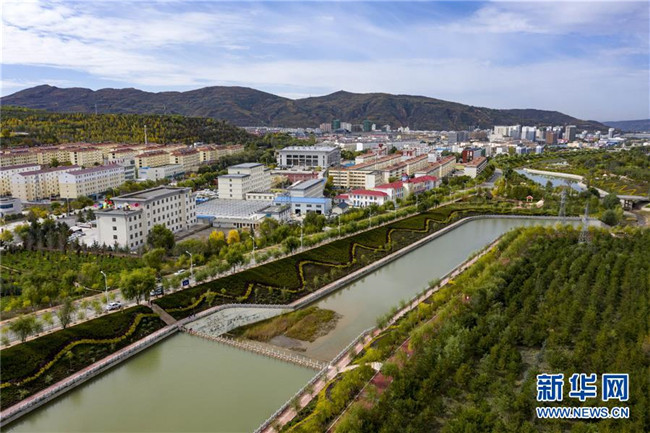 寧夏固原市隆德縣境內(nèi)的渝河兩岸健身步道、綠化景觀等設(shè)施完善,成為居民休閑娛樂的好去處(10月11日無(wú)人機(jī)拍攝)。 新華社記者 馮開華 攝