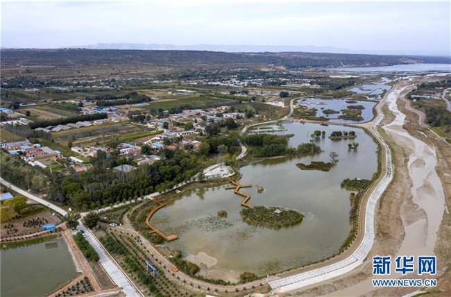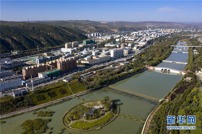 經(jīng)過綜合治理后的茹河成為寧夏固原市彭陽(yáng)縣的一道新風(fēng)景(10月12日無(wú)人機(jī)拍攝)。 新華社記者 馮開華 攝