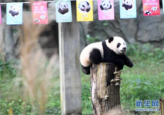 12月22日,重慶動物園1只半歲的大熊貓?jiān)趹敉饣顒?。?dāng)日,重慶動物園為4只大熊貓寶寶“雙雙”“重重”“喜喜”“慶慶”舉行半歲生日慶?;顒?。4只半歲大熊貓?jiān)陲曫B(yǎng)員的照料下,在熊貓館運(yùn)動場內(nèi)玩耍、嬉戲,與市民游客一同過冬至。新華社記者唐奕攝