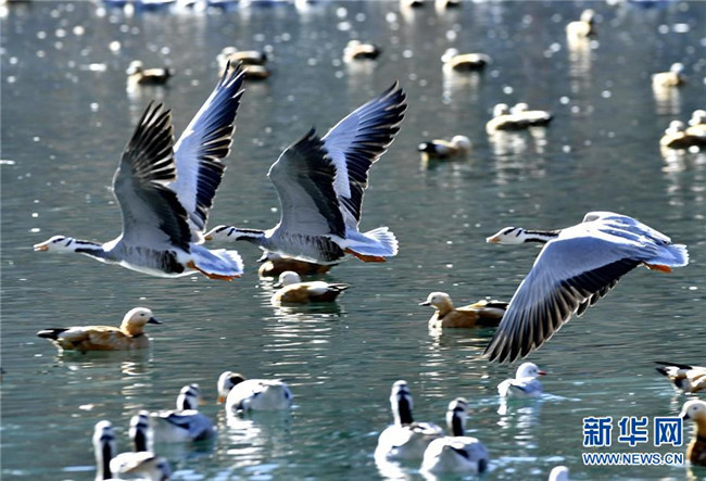 冬日,西藏拉薩市布達(dá)拉宮腳下的龍王潭公園成了鳥(niǎo)的“天堂”。數(shù)不盡的斑頭雁、赤麻鴨、紅嘴鷗在這里嬉戲、覓食。