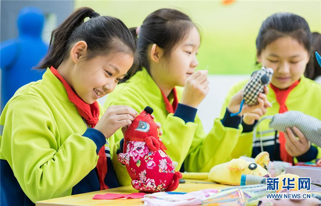 當(dāng)日,內(nèi)蒙古呼和浩特市玉泉區(qū)通順街小學(xué)“巧手社團(tuán)”的學(xué)生在老師的指導(dǎo)下,利用身邊的布頭、絲綿等廢棄物,制作生肖鼠布藝作品,表達(dá)對新年的美好祝愿。近年來,玉泉區(qū)教育部門大力推動“傳統(tǒng)文化進(jìn)校園”活動,在當(dāng)?shù)貙W(xué)校里開設(shè)剪紙、面塑、戲曲等民間藝術(shù)課程,讓學(xué)生感受傳統(tǒng)文化的魅力。 新華網(wǎng) 發(fā)(丁根厚 攝)