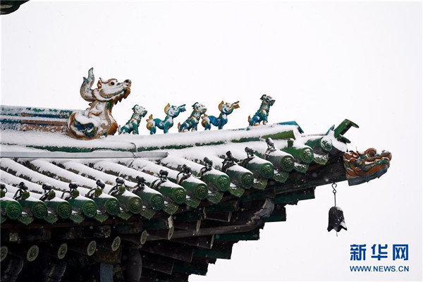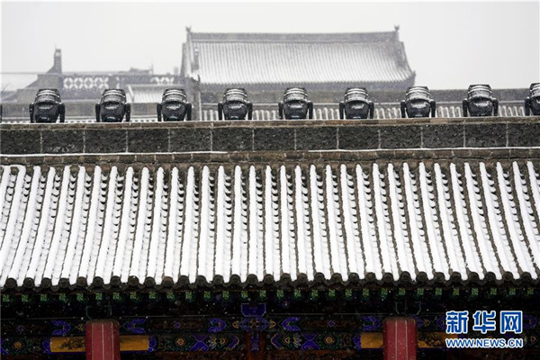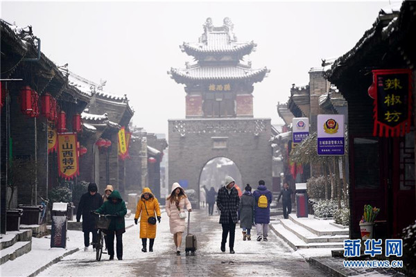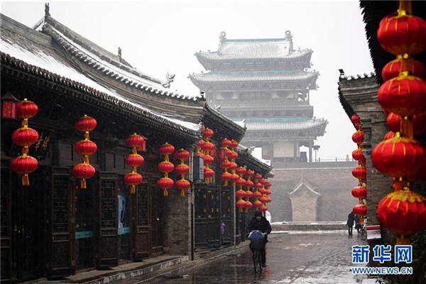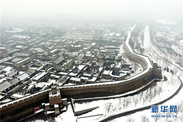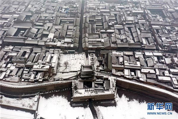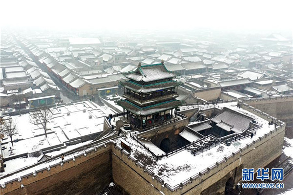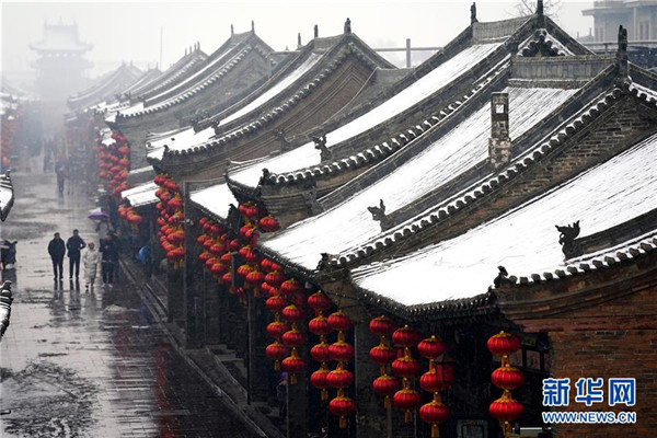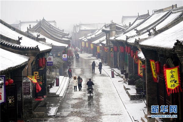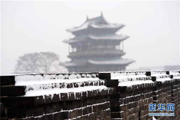 當(dāng)日,山西省平遙縣迎來降雪,雪中的平遙古城銀裝素裹,美景如畫。平遙古城是目前中國保存最完整的古代縣級城池之一,1997年被列入世界文化遺產(chǎn)名錄。新華社記者詹彥攝