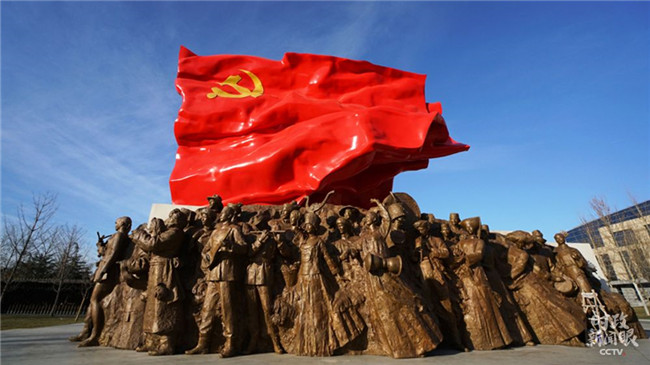 △坐落于中央黨校的大型組雕《旗幟》,刻畫了中國特色社會主義建設者昂揚的精神風貌。(來源:中央黨校官網(wǎng))