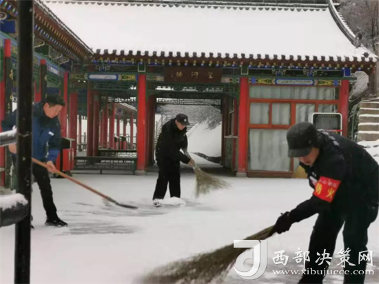 此次降雪持續(xù)時(shí)間長,降雪量大,清掃過程以主要道路為重點(diǎn),快速對路面積雪進(jìn)行清掃,確保天亮后游客能夠安全游覽景區(qū)。