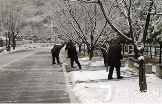 連續(xù)的降雪使景區(qū)內(nèi)積雪最深達(dá)10公分,在欣賞到美景的同時(shí),為確保降雪期間景區(qū)游覽安全和旅游秩序,管理公司一線全體員工從降雪開始一直到7日,冒著嚴(yán)寒對景區(qū)山上主要道路積雪進(jìn)行清掃,確保及時(shí)恢復(fù)道路暢通,為游客安全游覽做好保障。