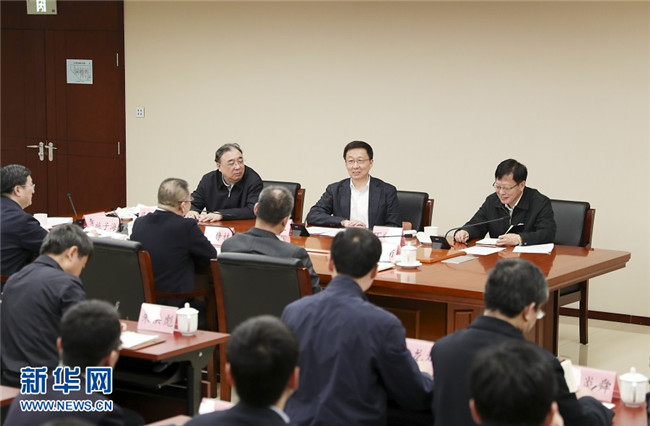 1月9日,中共中央政治局常委、國(guó)務(wù)院副總理韓正在國(guó)家醫(yī)療保障局召開座談會(huì)?!⌒氯A社記者 丁海濤 攝
