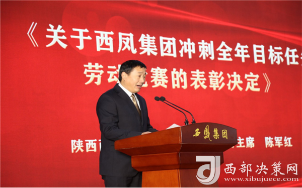 西鳳集團公司勞動競賽領導小組辦公室主任、工會主席陳軍紅宣讀《關于西鳳集團沖刺全年目標任務勞動競賽的表彰決定》