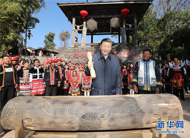 春節(jié)前夕,中共中央總書記、國家主席、中央軍委主席習(xí)近平赴云南考察,看望慰問基層干部群眾。這是1月19日下午,習(xí)近平來到騰沖市清水鄉(xiāng)三家村中寨司莫拉佤族村看望鄉(xiāng)親們,了解脫貧攻堅情況,并向大家送上新春祝福。 新華社記者 鞠鵬 攝