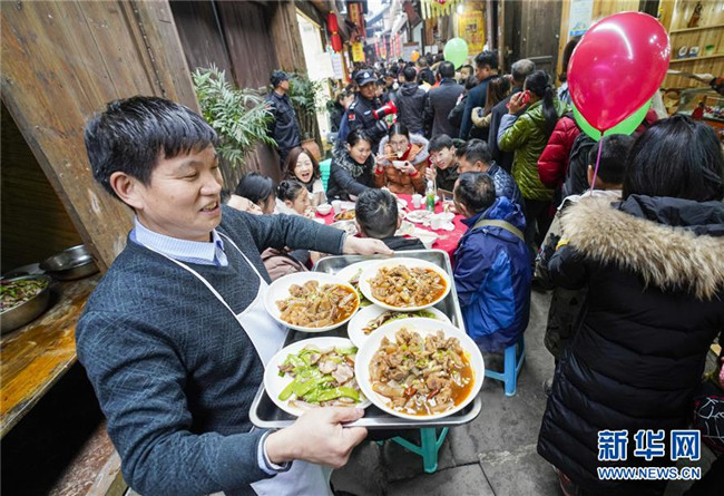 重慶:吃“千米長宴”品古鎮(zhèn)年味