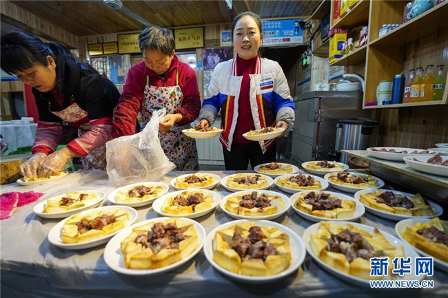 1月18日,中山古鎮(zhèn)的一戶商家在“千米長宴”開席前準(zhǔn)備菜品。當(dāng)日中午,伴隨著一聲“開席嘍”,一年一度的“千米長宴”在重慶市江津區(qū)中山古鎮(zhèn)舉行。噴香的煙熏豆腐、軟糯的夾燒肉、可口的石板糍粑……800余桌年味十足的特色美食,吸引了兩萬多名游客前來體驗(yàn)傳統(tǒng)民俗,感受“一雙筷子吃遍一條街”的暢快淋漓。中山古鎮(zhèn)自古就有“千米匯長宴萬人祈福祉”的習(xí)俗。每年春節(jié)期間,古鎮(zhèn)老街居民都會在千米長街上大擺“百家宴”,祝福生意興隆、家業(yè)興旺、風(fēng)調(diào)雨順、五谷豐登。新華社記者劉潺攝