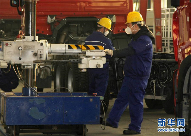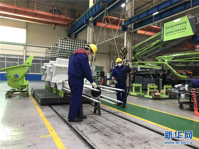2月5日,中聯(lián)重科消防機械公司員工在廠房內(nèi)進行裝配。 新華社發(fā)