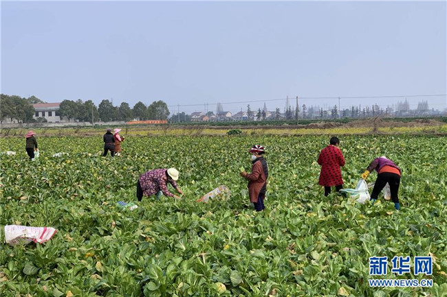 2月7日,湖南省南縣三立蔬菜合作社菜農(nóng)在采摘蔬菜。 新華社發(fā)