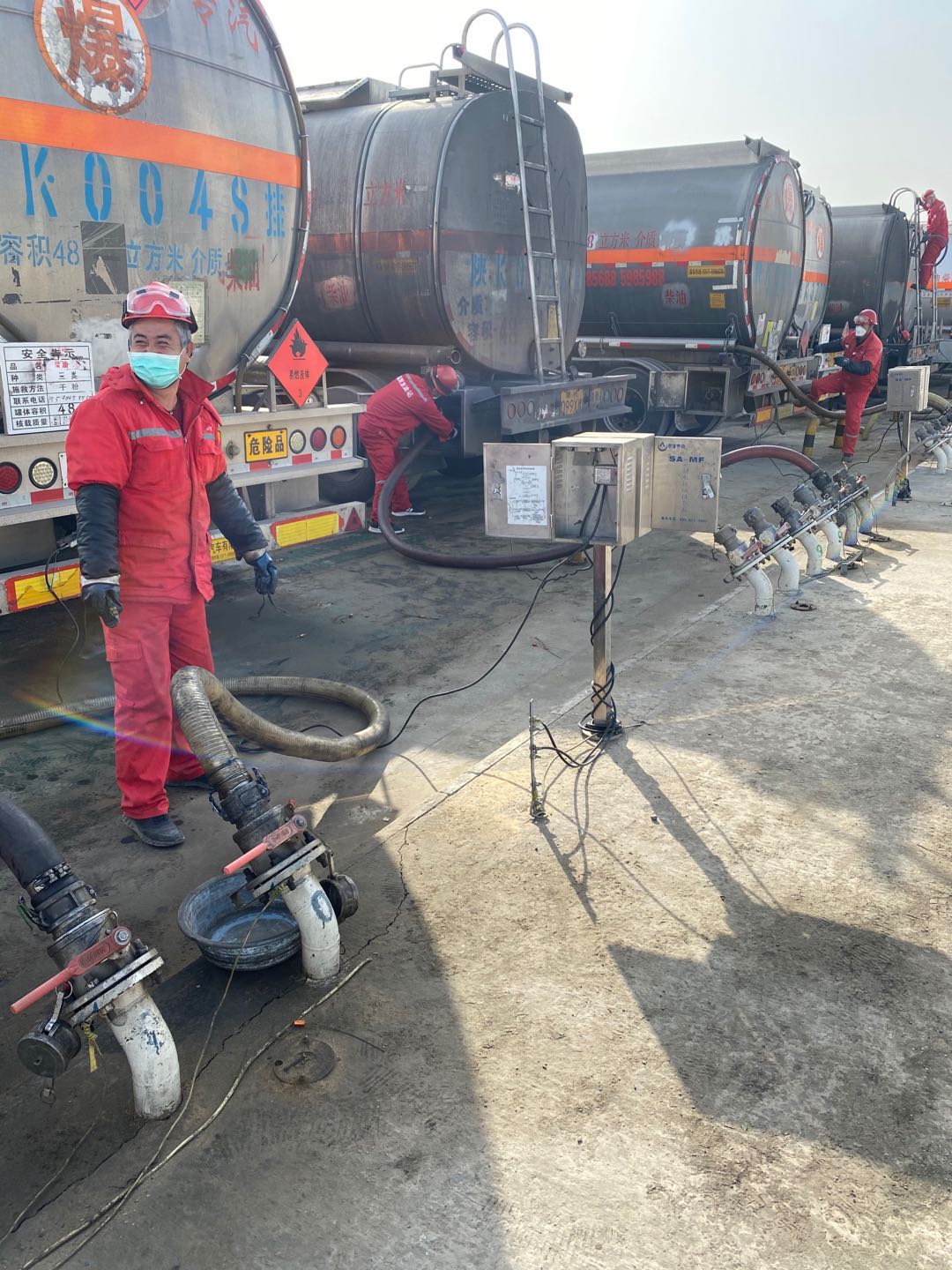 已近零時(shí),空曠的付油區(qū)氣溫早已降至零攝氏度以下。此時(shí),油庫(kù)的發(fā)油作業(yè)依然沒(méi)有停止……油庫(kù)的幾名工友,頭戴紅色安全帽、身著藍(lán)色工裝,對(duì)入庫(kù)油庫(kù)油車(chē)進(jìn)行安全檢查,驗(yàn)票員仔細(xì)核對(duì)著票據(jù)信息,引導(dǎo)車(chē)輛正確???,不斷提示駕駛員注意操作安全。