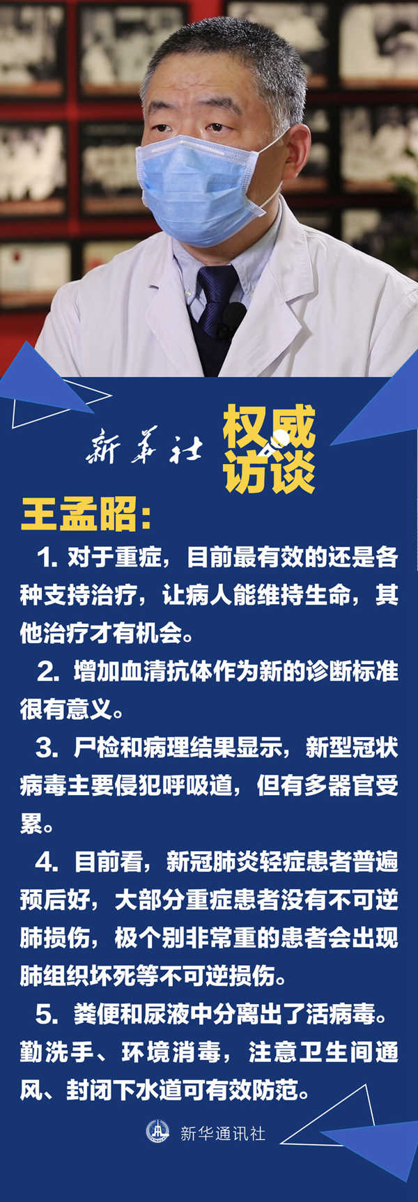 國家衛(wèi)健委近日發(fā)布《新型冠狀病毒肺炎診療方案(試行第七版)》。關(guān)于新版診療方案里加入的危重癥、重癥“預(yù)警指標(biāo)”能降低病亡率嗎?血清抗體檢測(cè)能解決核酸“假陰”問題嗎?糞便和尿液里的病毒怎么防控?針對(duì)這些問題,新華社記者專訪了北京協(xié)和醫(yī)院呼吸與重癥醫(yī)學(xué)科主任王孟昭,一起來了解一下吧。