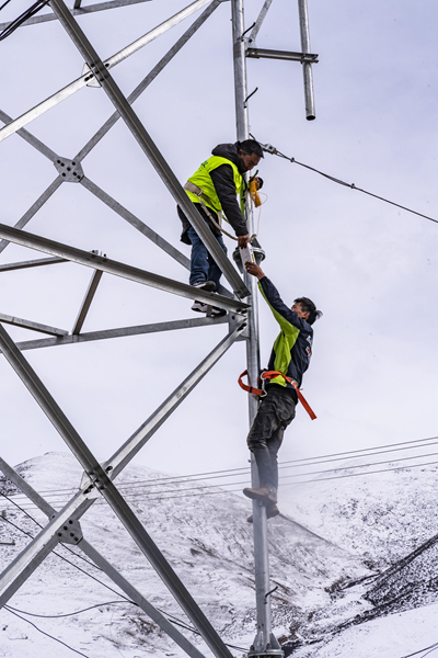 在距離當雄縣城約80公里左右的烏瑪塘鄉(xiāng)巴嘎村,中國電信集團拉薩分公司當雄電信局的技術(shù)人員在調(diào)試基站設(shè)備(3月6日攝)。新華社記者 孫非/攝