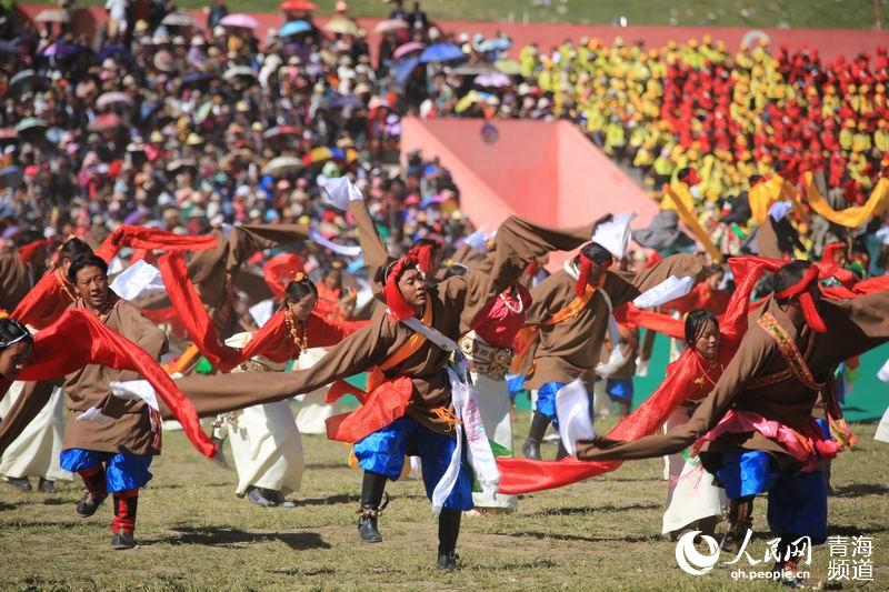 玉樹賽馬節(jié)藏舞表演。 楊陽攝