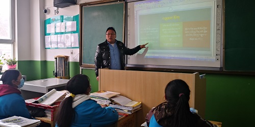公保多杰在玉樹州民族中學(xué)上課。 楊陽攝