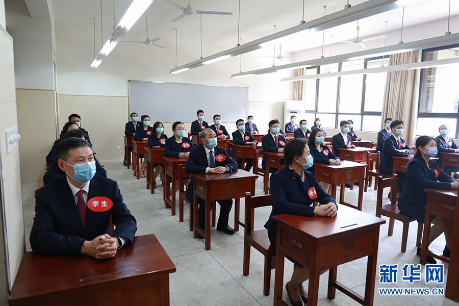在重慶市第八中學教室內,學生座位保持了一定間距,學生單人單座,盡量避免上課期間相互接觸。圖為教師演練上課場景。新華網(wǎng)發(fā)