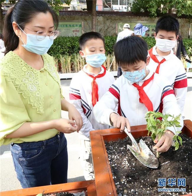 該校啟動“我是小小勞動者”系列線上和線下主題活動月。在線下活動中,先期復(fù)學(xué)的學(xué)生們在輔導(dǎo)老師指導(dǎo)下開展勞動實踐。