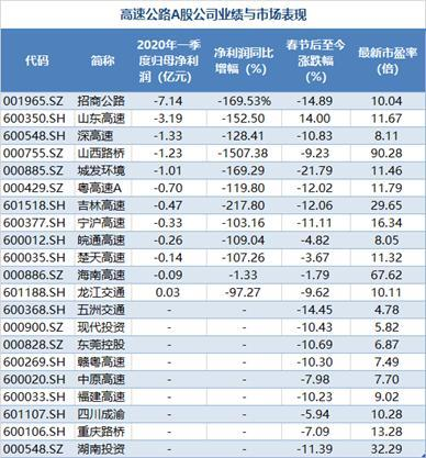 在疫情之下,交通企業(yè)普遍虧損。從高速公路企業(yè)來說,客運量驟減和免費政策的雙重夾擊之下,他們經(jīng)歷了長達(dá)79天的“至暗時刻”。同花順數(shù)據(jù)顯示,A股高速公路板塊總計有21家上市公司。截至4月30日,共有16家發(fā)布了第一季度業(yè)績報告,其中有14家公司營收、凈利潤雙雙下滑。與此同時,還有高速公路概念股的同期普遍下跌。