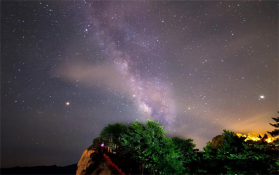 夜深時(shí),繁星璀璨,浪漫星空的樂章開始奏響。在城市里,你有多久沒有看到過無(wú)垠的星空?華山之巔,一輪朗月靜靜懸在漆黑的夜幕之上。在這里,星空依然閃耀,月色依然純潔溫暖。拋開一切疲倦,用最無(wú)憂的心聆聽星空獨(dú)特的音韻,享受大自然最真切卻最奢侈的美,留下在華山和天空擁抱的味道。