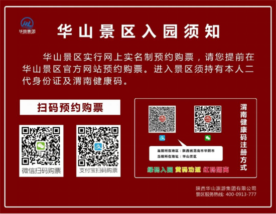 1、華山景區(qū)步行登山道(華山門)于今日(2020年5月15日)正式開放,每日最大限流1000人,運(yùn)營(yíng)時(shí)間為7:00至15:00。景區(qū)門票預(yù)約政策從原來的三天可預(yù)約改為七天可預(yù)約,開放當(dāng)日售票,根據(jù)庫存上限,售完即停。