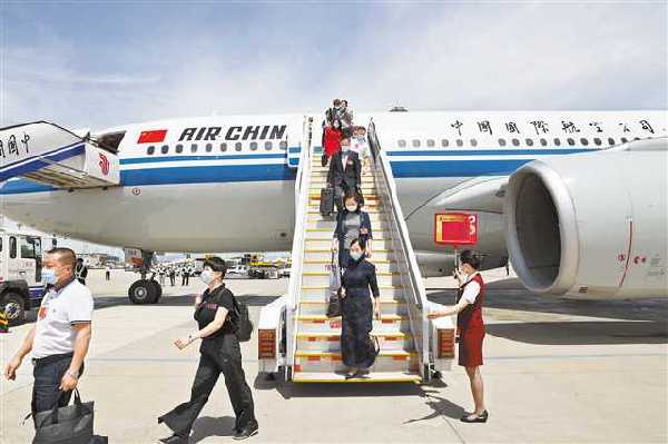 五月二十日,出席十三屆全國人大三次會議的重慶代表團(tuán)抵達(dá)北京。記者 巨建兵 攝