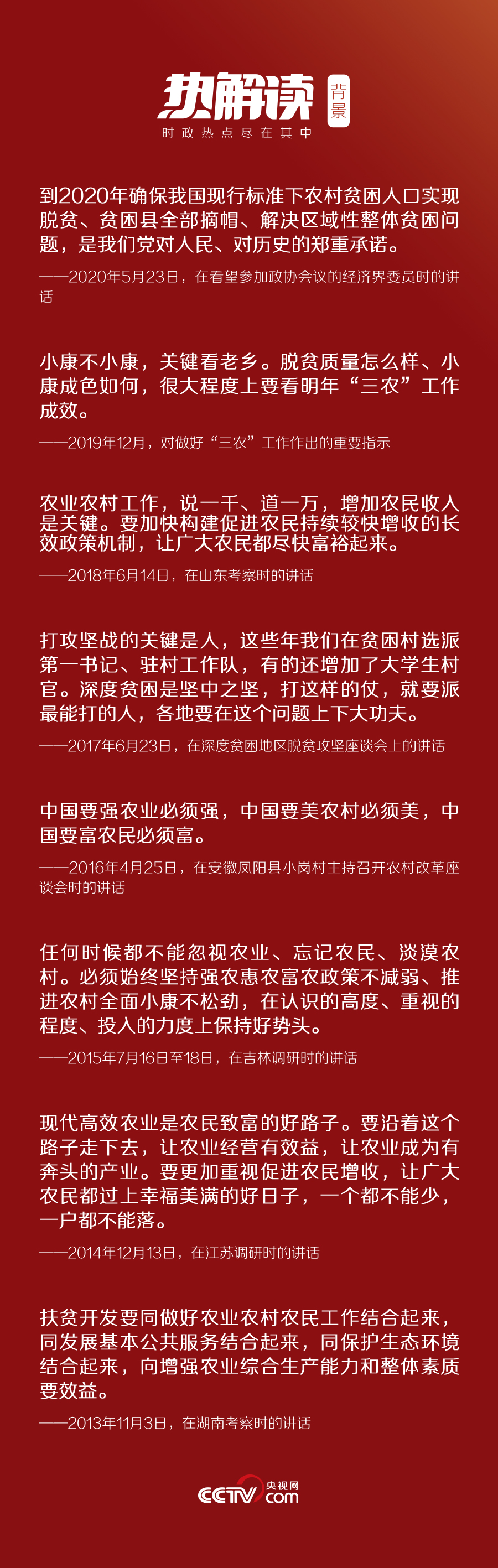3月6日,在黨的十八大以來脫貧攻堅方面最大規(guī)模的會議上,習(xí)近平對脫貧攻堅工作再作部署:“這是一場硬仗,越到最后越要緊繃這根弦,不能停頓、不能大意、不能放松。各省區(qū)市都層層簽了軍令狀,承諾了就要兌現(xiàn)。”