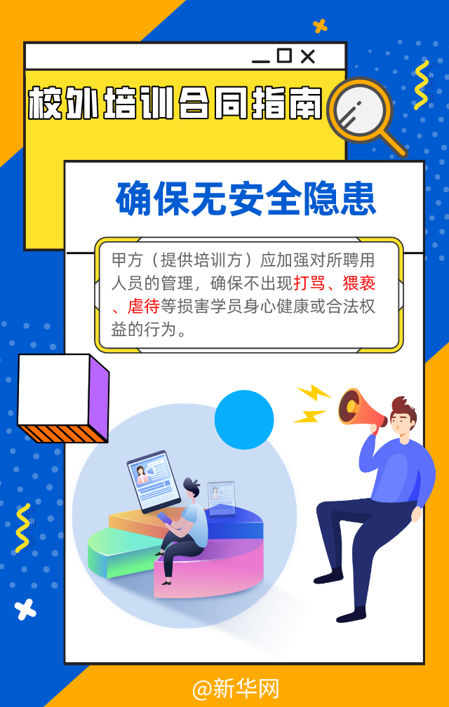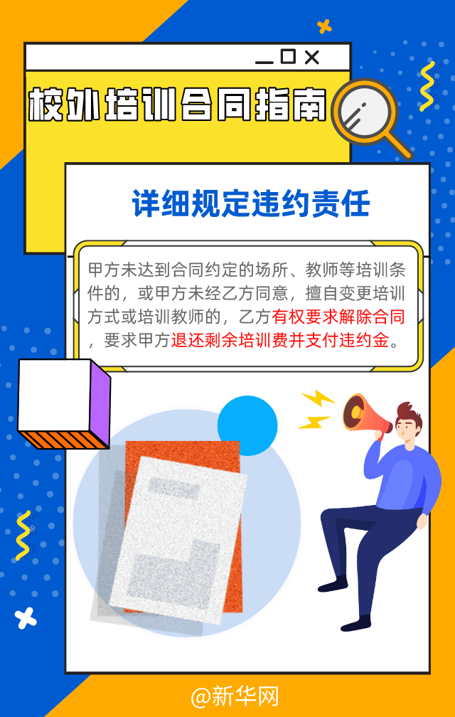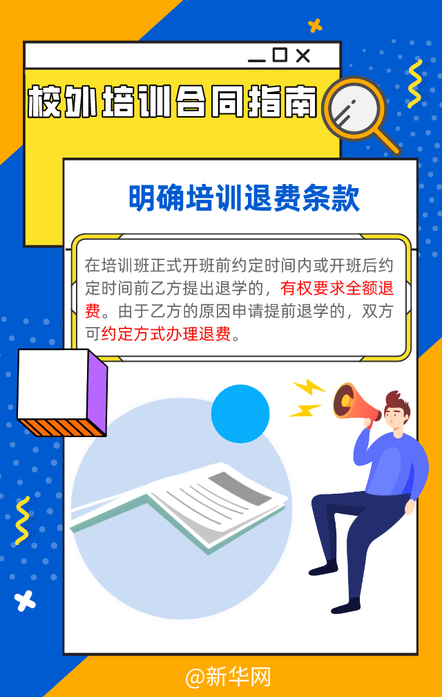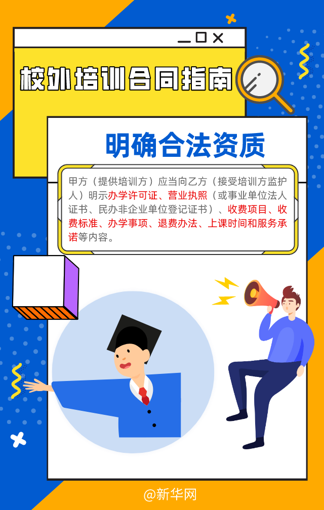 長期以來,校外培訓機構的資質(zhì)問題,以及部分培訓機構存在違規(guī)收費、退費難、卷款“跑路”現(xiàn)象,這些令學生和家長發(fā)愁。教育部、市場監(jiān)管總局近日發(fā)布《中小學生校外培訓服務合同(示范文本)》,供培訓者(學員)監(jiān)護人與開展中小學生校外培訓的培訓機構簽訂培訓合同時參照使用,為規(guī)范校外培訓做出新的探索。一起來看看,這份“國家版”標準合同有哪些亮點?
