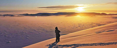 5月3日,隊員在內拉灣海冰觀測途中看到正午的太陽。孫曉宇攝