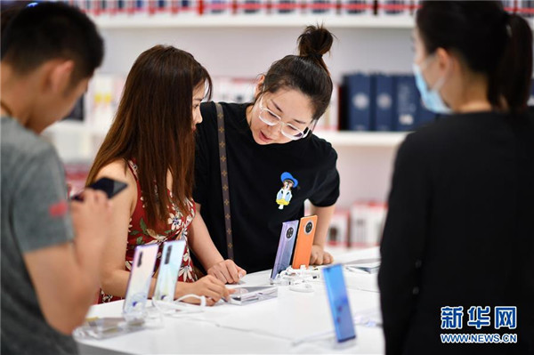 7月1日,顧客在??谌赵聫V場(chǎng)免稅店選購(gòu)手機(jī)等電子消費(fèi)產(chǎn)品。當(dāng)日,海南開(kāi)始實(shí)施調(diào)整后的離島免稅購(gòu)物政策。海南離島旅客每年每人免稅購(gòu)物額度提高至10萬(wàn)元,電子消費(fèi)產(chǎn)品等7類新增商品開(kāi)售。新華社記者郭程攝