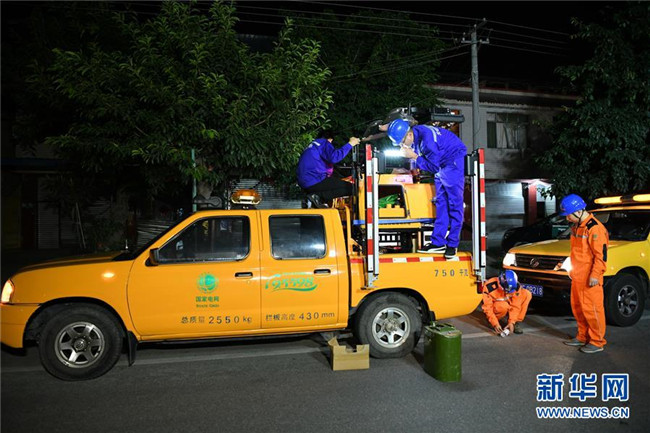 7月9日凌晨,在廣漢市南豐鎮(zhèn)元盛村,電力部門在調(diào)試設(shè)備提供應(yīng)急照明。 7月8日晚,四川省廣漢市南豐鎮(zhèn)元盛村一花炮廠發(fā)生火災(zāi)并引發(fā)的爆炸事故,已導(dǎo)致6人受傷,其中2人重傷,4人輕傷。事故原因正在調(diào)查中。 新華社記者 王曦 攝