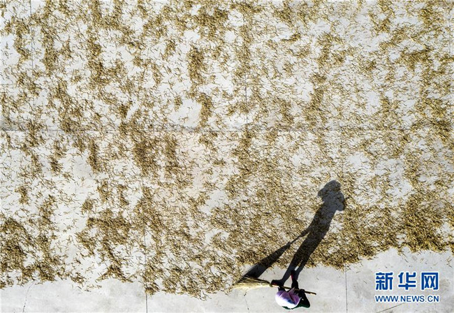 7月16日,農(nóng)民在寧夏鹽池縣惠安堡鎮(zhèn)大壩村晾曬黃花菜(無人機(jī)照片)。 新華社記者 馮開華 攝