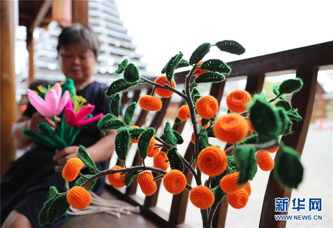 7月18日,在貴州省銅仁市玉屏侗族自治縣田坪鎮(zhèn)侗鄉(xiāng)風情園內,易地扶貧搬遷群眾在加工手工藝品。新華社發(fā)(胡攀學 攝)