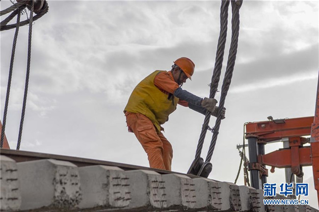 19日上午,位于新疆若羌縣依吞布拉克鎮(zhèn)的G315國(guó)道一號(hào)大橋上,隨著一根重達(dá)16噸的T梁穩(wěn)穩(wěn)落在橋墩上,新疆在建重大工程格(爾木)庫(kù)(爾勒)鐵路新疆段最后一座跨315國(guó)道的橋梁架設(shè)完工。