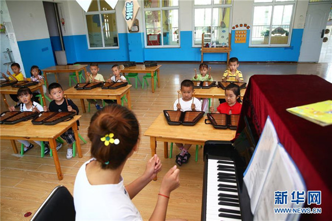 7月22日,學(xué)生在石嘴山市大武口區(qū)青少年學(xué)生校外活動(dòng)中心音樂(lè)教室內(nèi)學(xué)習(xí)鐘琴。新華社記者 賈浩成 攝