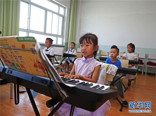 7月22日,學(xué)生在石嘴山市大武口區(qū)青少年學(xué)生校外活動(dòng)中心音樂(lè)教室內(nèi)練習(xí)電子琴。新華社記者 賈浩成 攝