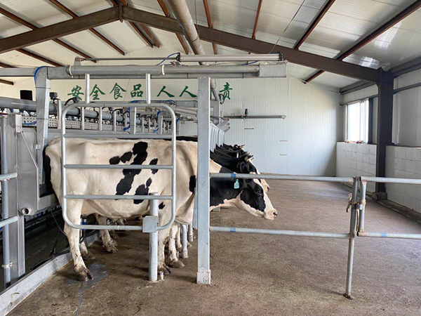 奶牛每天需要擠奶2到3次。牧場的每個牛舍里,都配有1個擠奶廳,奶牛吃完飼料,直接就可以到擠奶廳擠奶。