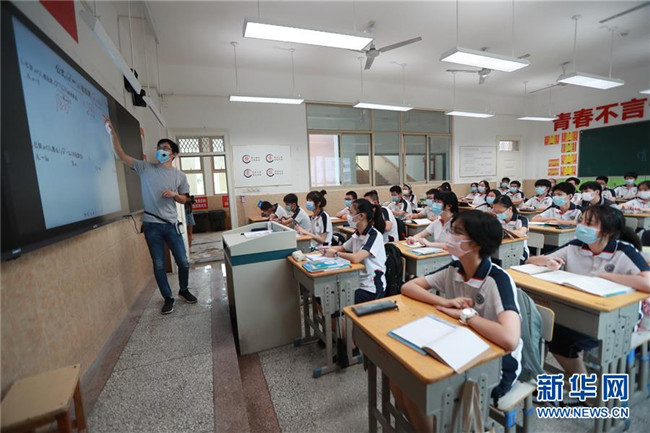 8月10日,在位于武漢的湖北省水果湖一中,學生在教室里聽課。