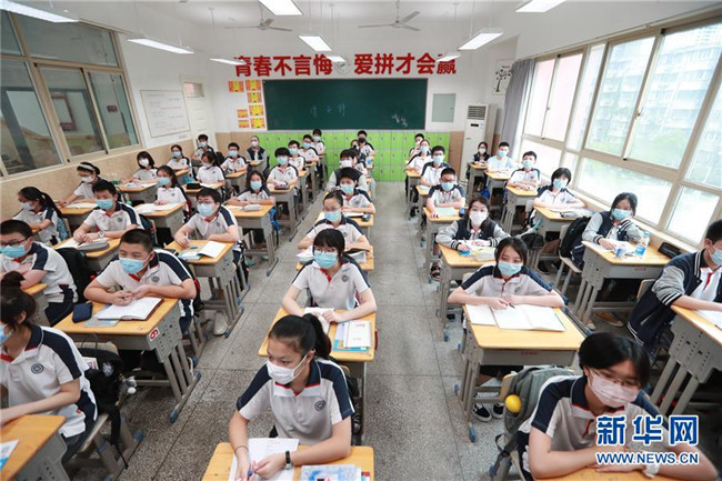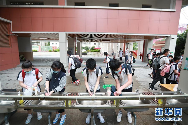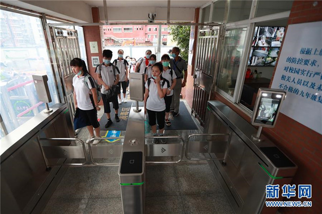 當日,武漢初中階段初一、初二年級返校復學,至8月30日結束。 新華社發(fā)(趙軍 攝)